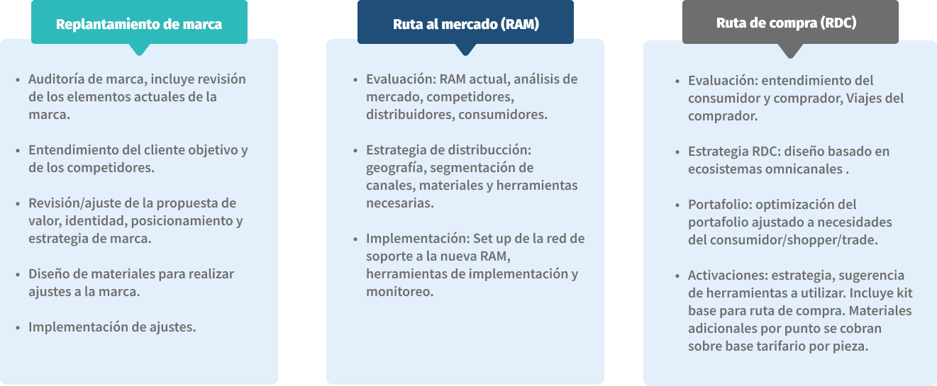 - Diseño de estrategia de portafolio, ruta al mercado y ruta de compra.